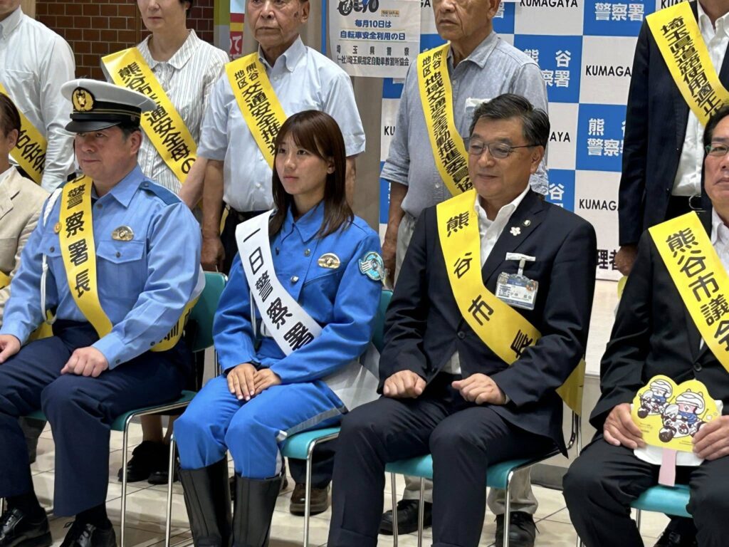 当日一日署長さんとして、熊谷市を本拠地とする「ちふれASエルフェン埼玉」の樋口梨花選手に参加いただきました。